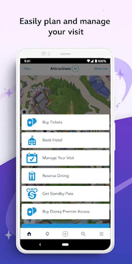 With this release, sign into your profile faster using biometric authentication for your MyDisney Account. Book park visits, make hotel dining reservations and get Disney Standby Passes for attractions using new features on the Home Screen menu.