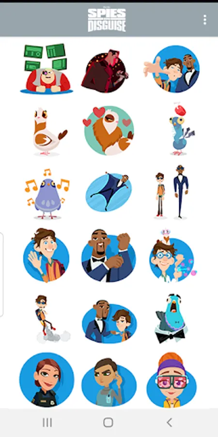 Hold onto your feathers! Upgrade your texts for instant message and WhatsApp with 20 NEW Spies in Disguise animated stickers, featuring Lance Sterling (Will Smith), Walter Beckett (Tom Holland), and your favorite pigeon flock. Download these stickers now. Spies in Disguise is available on Digital & Blu-ray.