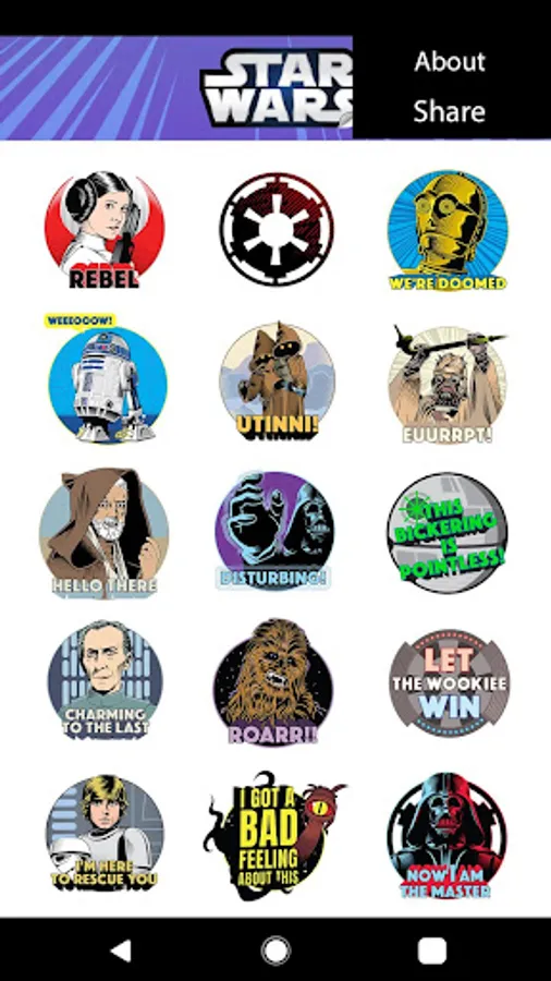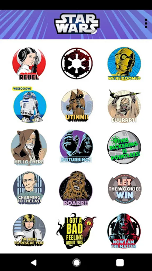 Use the force and respond to your conversations with high quality Star Wars stickers. There is a response for every situation!