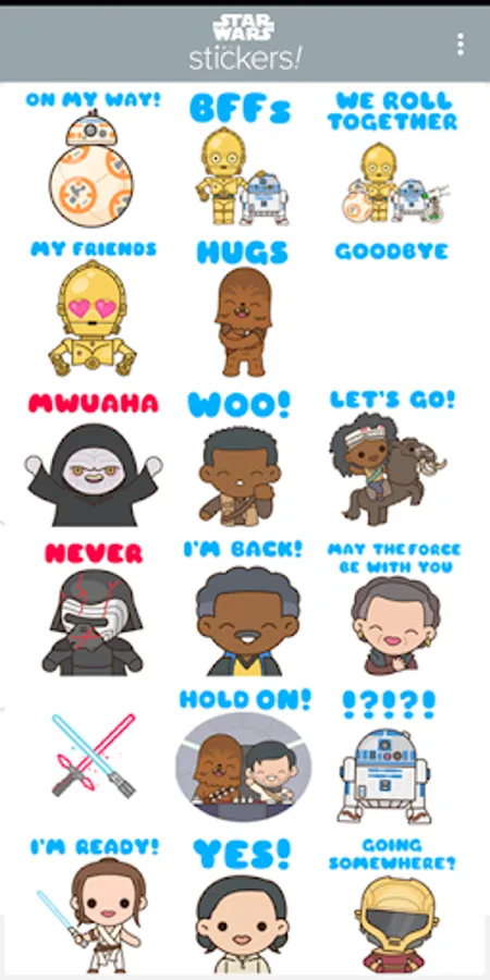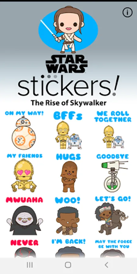 The saga ends. The story lives forever. Celebrate the release of Star Wars: The Rise of Skywalker with 22 NEW animated stickers for instant message and WhatsApp. Add the Force to your texts with Rey, Kylo, Finn, Poe and all your favorite characters. Don’t miss your opportunity to download these stickers, and see Star Wars: The Rise of Skywalker in theaters now!