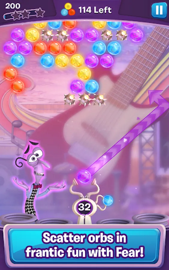 • UNLEASH POWER-UPS – Create sunbursts with Joy, let the rain pour with Sadness, blaze a fiery path with Anger, repel matching memories with Disgust, and scatter orbs in frantic fun with Fear!