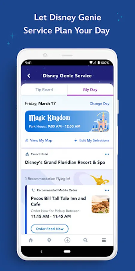 -Keep select Disney Resort hotel reservations, dining plans & activities organized—all in one spot with My Day & Plans.
