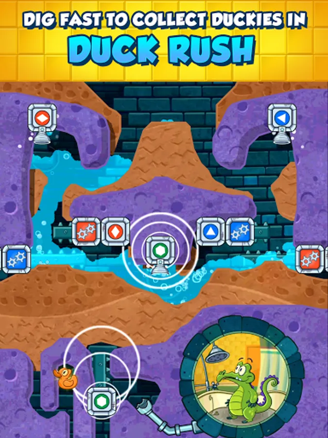 • Dig as fast as you can and get as many duckies as possible in ‘Duck Rush’ levels!
