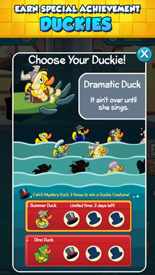 • Complete achievements and earn special themed duckies such as gladiator-duckie, astronaut-duckie, hula-duckie, and many more!