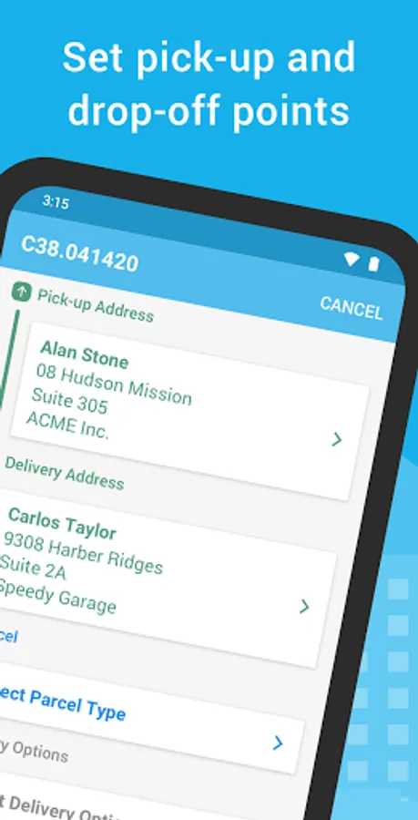 Simply download the app and sign-in with the code your delivery company provided. Start typing and let autocomplete finish pick-up and delivery addresses. Select pickup time, desired speed of delivery, parcel details, review the price quote and you’re done!