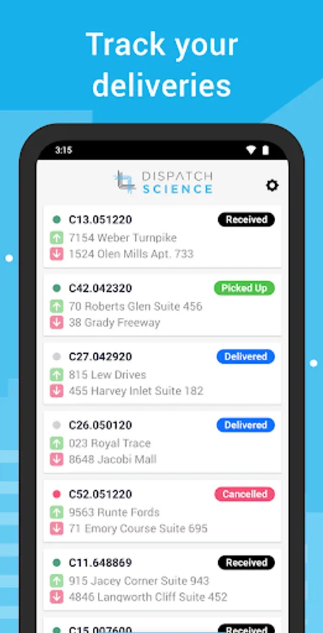 Dispatch Science Delivery App Screenshots