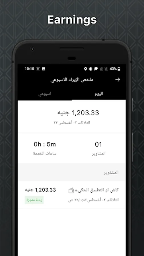 2. من خلال التطبيق يمكنك تتبع ارباحك ،مشاويرك وساعات عملك