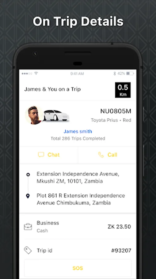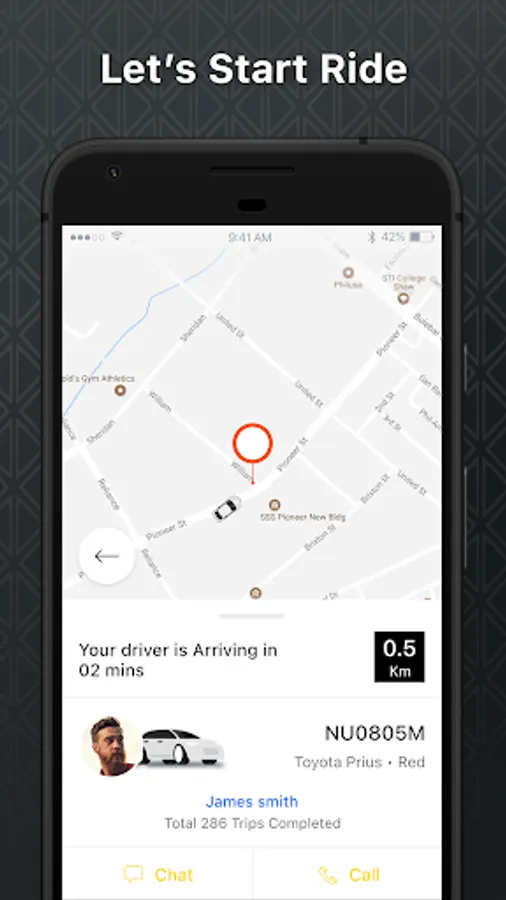 Confirming ride details: Before the ride, the user can confirm the ride details, including the driver's name, photo, and car model. Users can also see the driver's rating and track the driver's location on the app in real-time.
