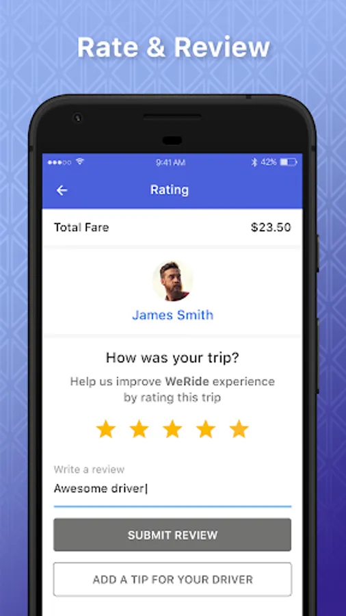 After every trip you can submit a rating along with comments . you can also let your driver know you appreciate your experience by adding a tip for them directly in the app