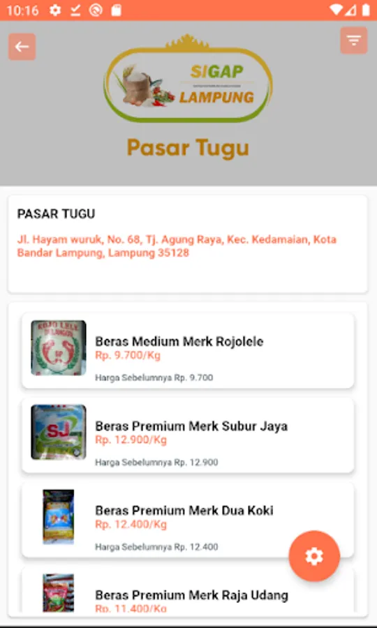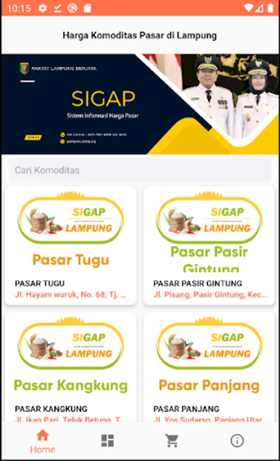 This application was made to make it easier for the people of Lampung Province to find and find out market prices quickly and easily.