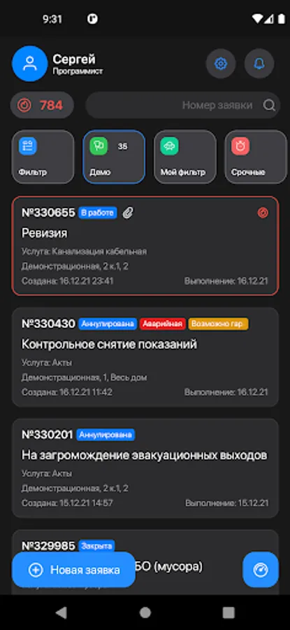 - personal and subordinate application statistics depending on access rights