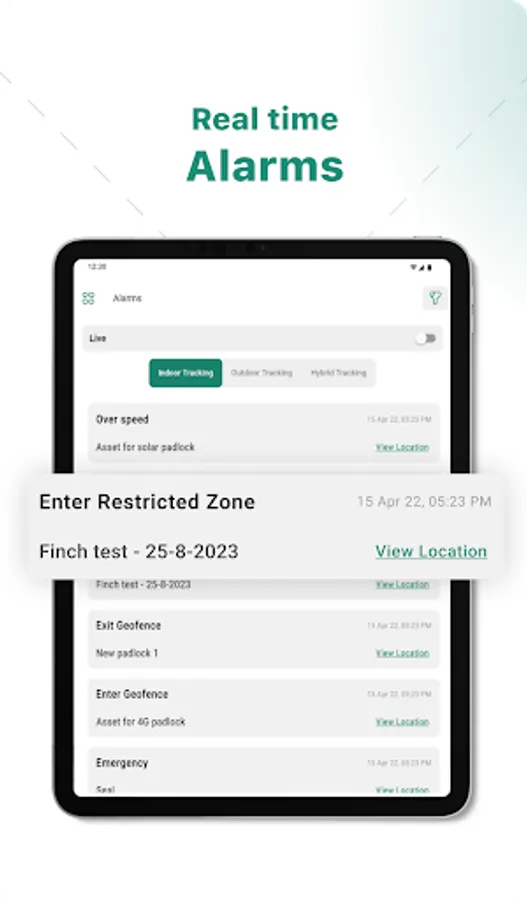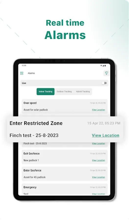Alarm configurations: Asset Watch allows you to set up alarms for your assets. which mean you will notified if your assets move outside of a specified area or if they are tampered with.
