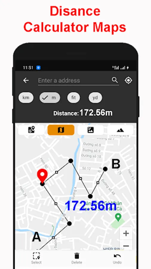 - Search any address or location to measuring area and distance on maps. Area calculator app is very good with calculate elevation of land.