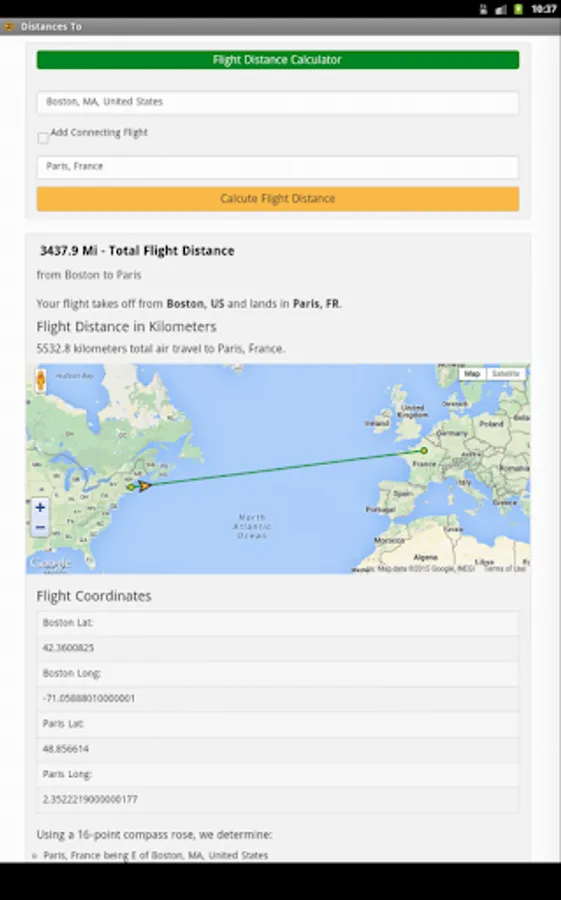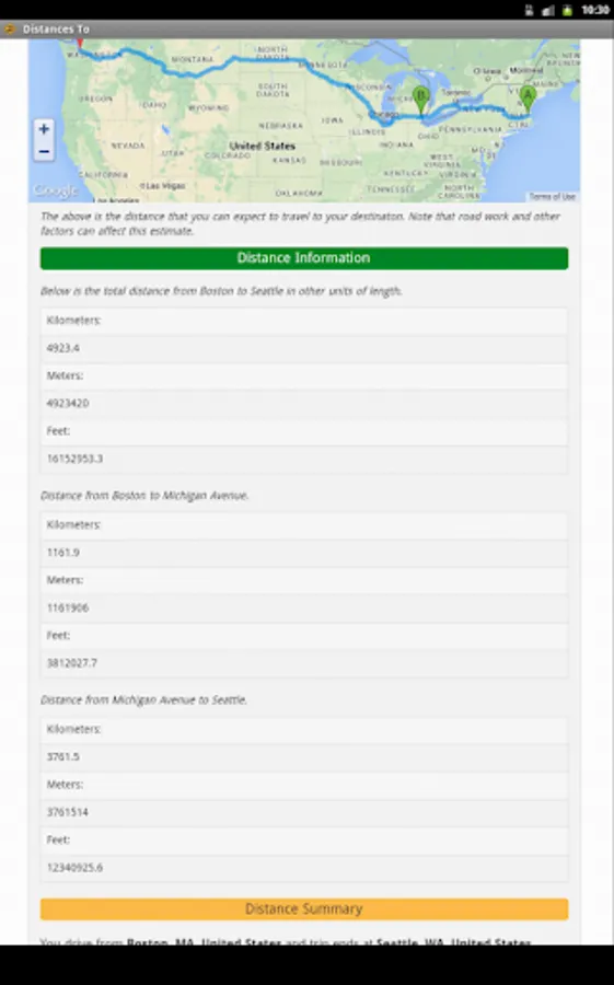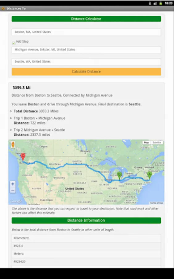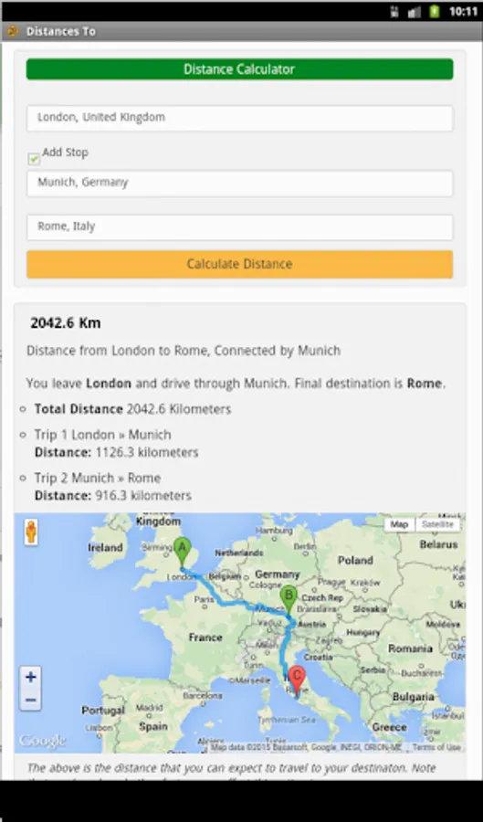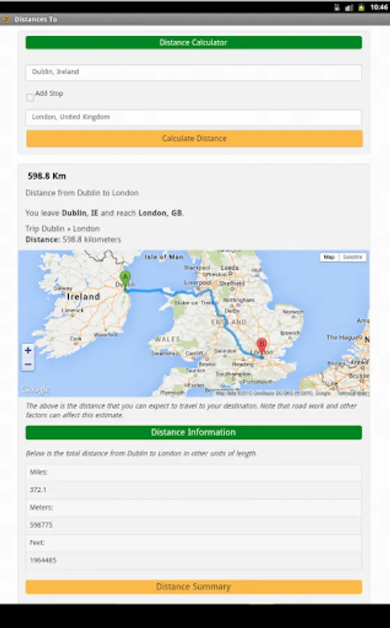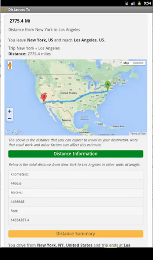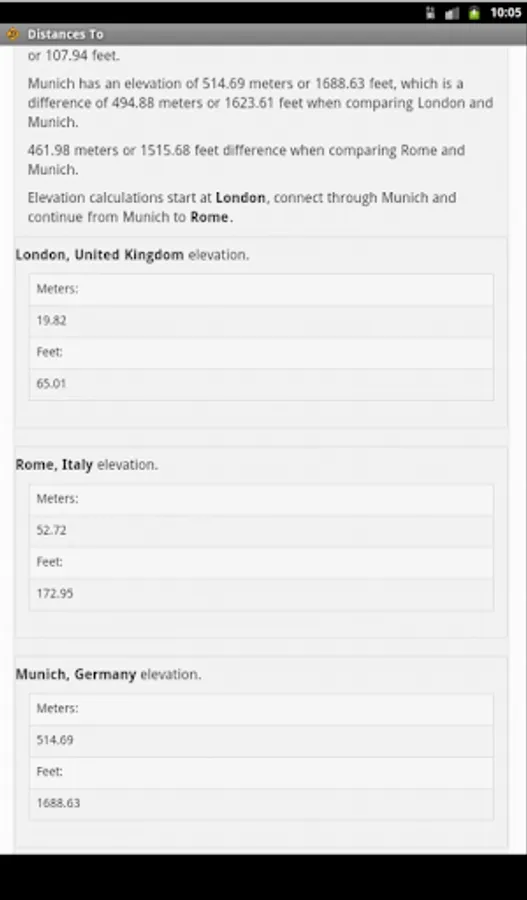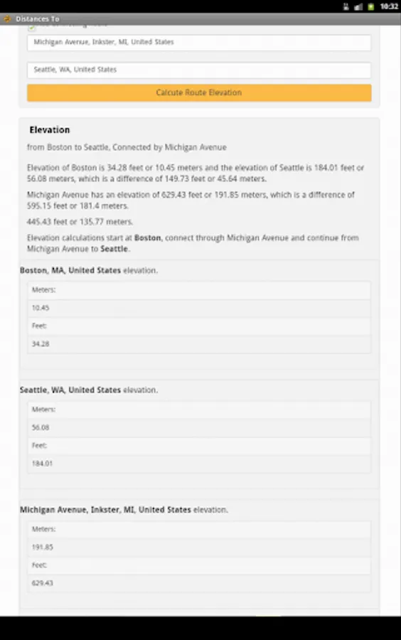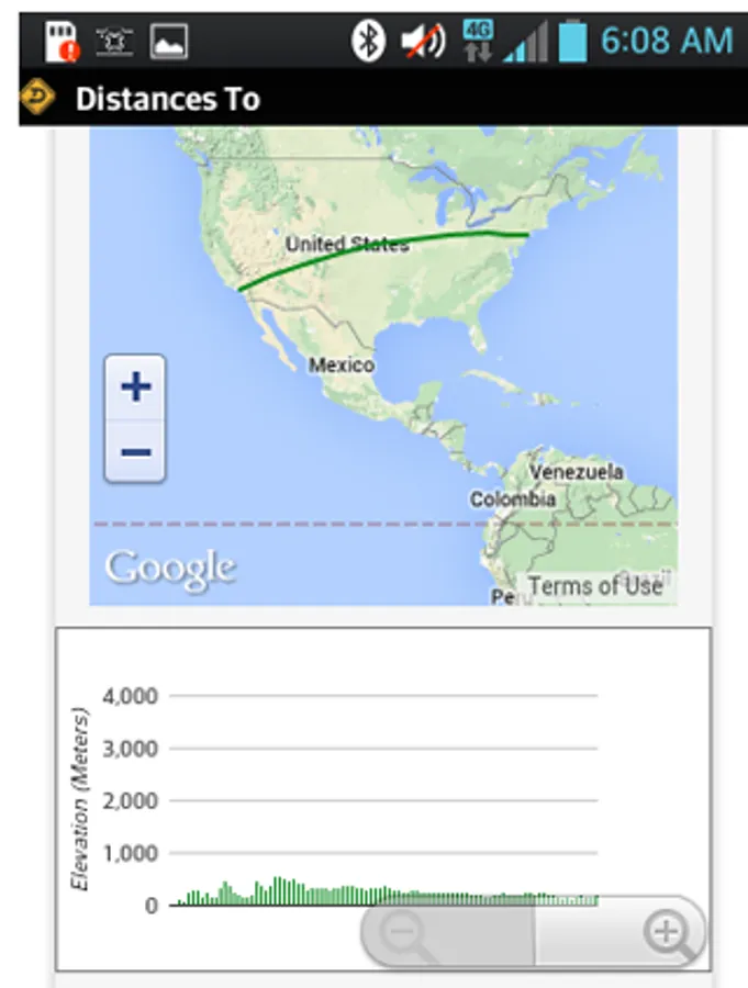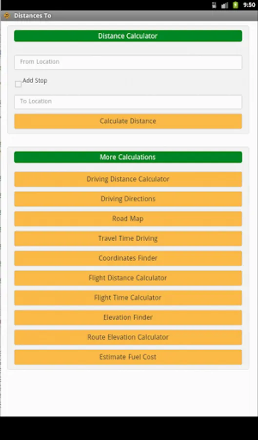 Distances To provides a way to calculate driving distances, flight distance, fuel cost, land elevation, travel time and more.