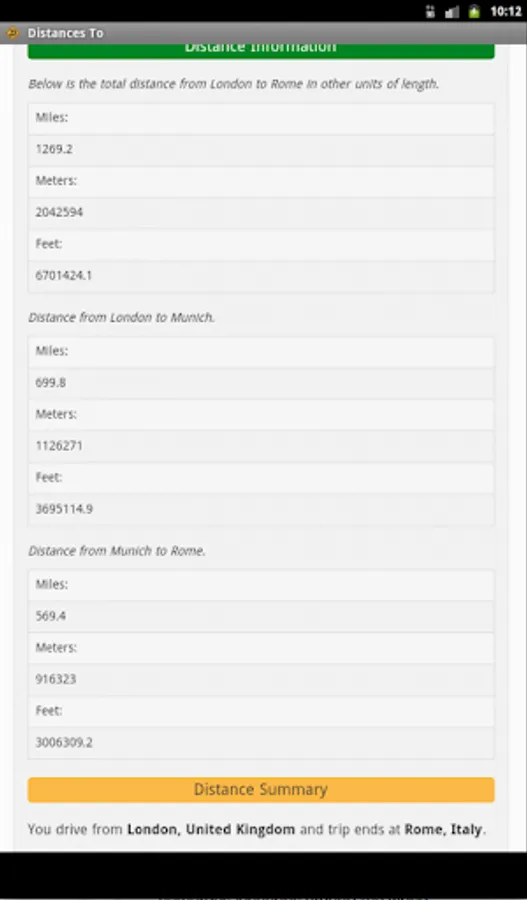 With support for countries all around the world, you can calculate the distance to, from and between cities, towns, villages and/or countries. Calculations are displayed in miles, kilometers, meters and/or feet.