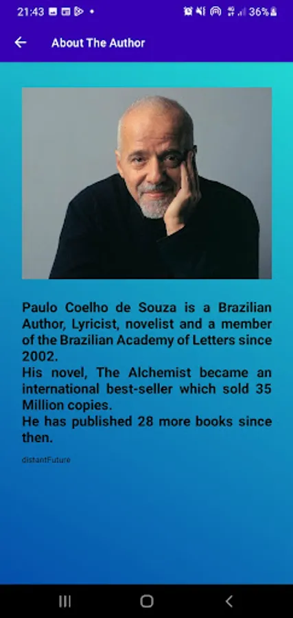 The Alchemist is the magical story of Santiago, an Andalusian shepherd boy who yearns to travel in search of worldly treasure as extravagant as any ever found. From his home in Spain he journeys to the markets of Tangiers and across the Egyptian desert to a fateful encounter with Alchemist, falls in love, and most importantly, learns the true importance of who he is and how to improve himself