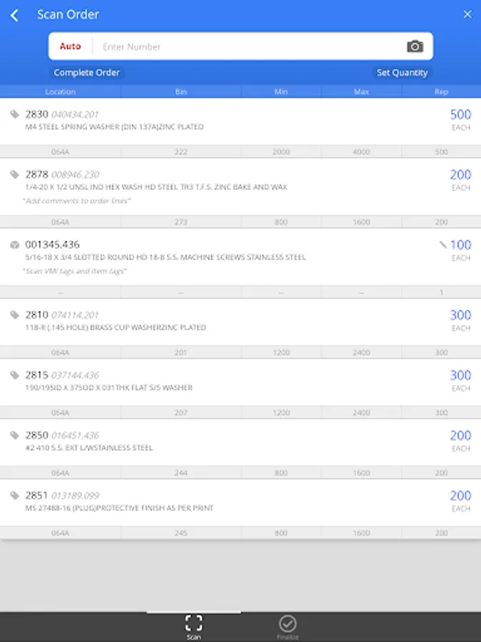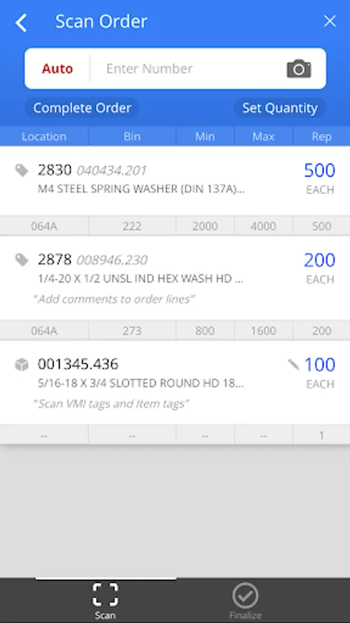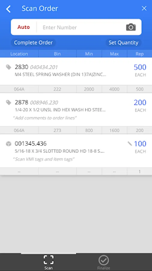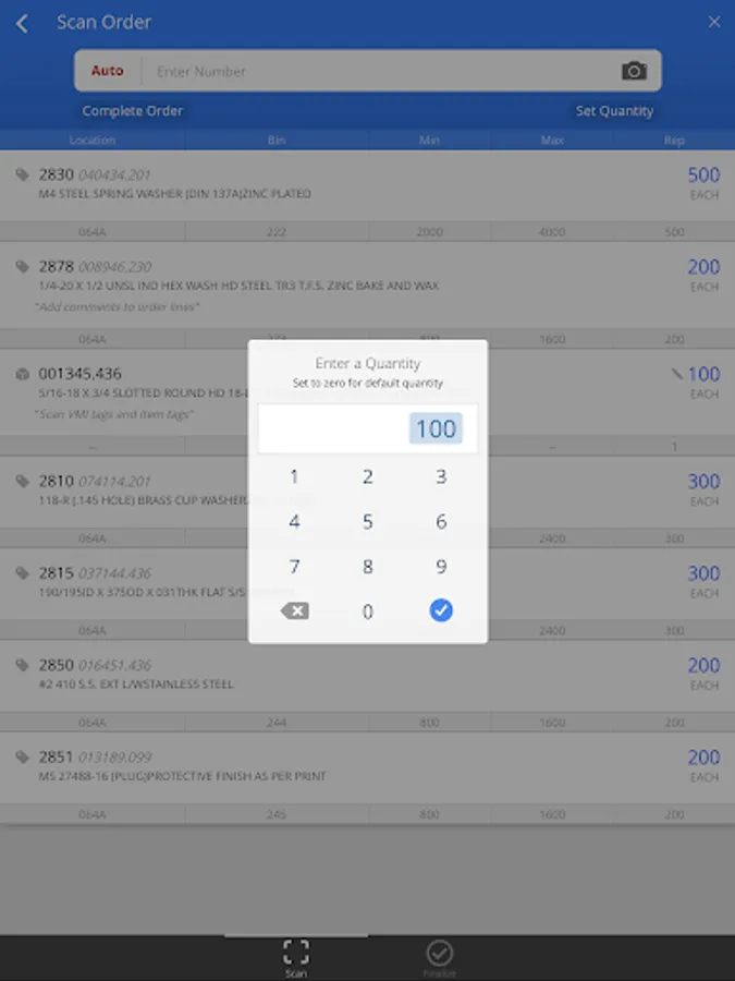 Distribution One’s VMI Scanner app makes it easy to manage your warehouse inventory. Use the app to take orders and submit them while on the go. A portable barcode scanner allows for quick entry of inventory items. While using VMI tags, your order details (quantity, location, etc.) can be quickly entered with just the scan of a barcode.