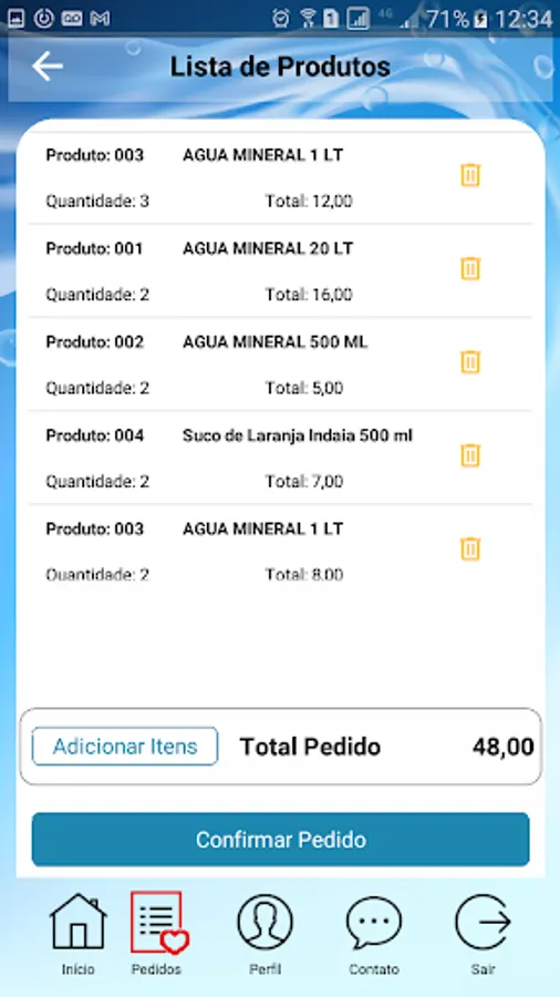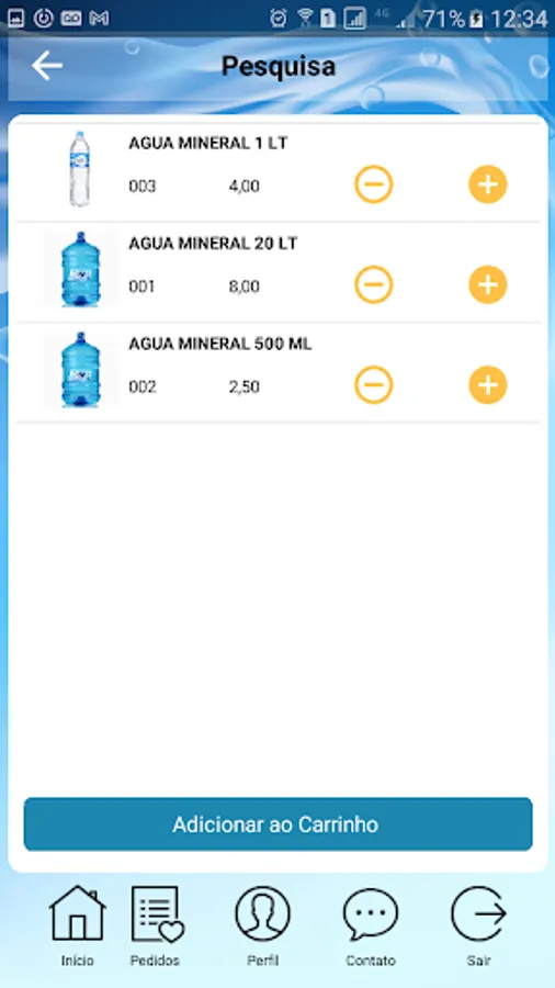 Application allows you to order mineral water from Distribuidora Paladar in the Caicó Region of Rio Grande do Norte