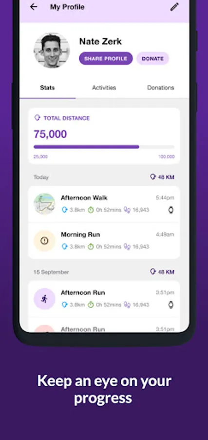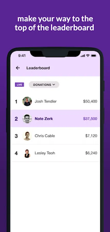 - View your activity and fundraising rank as well as individual and team a leaderboards