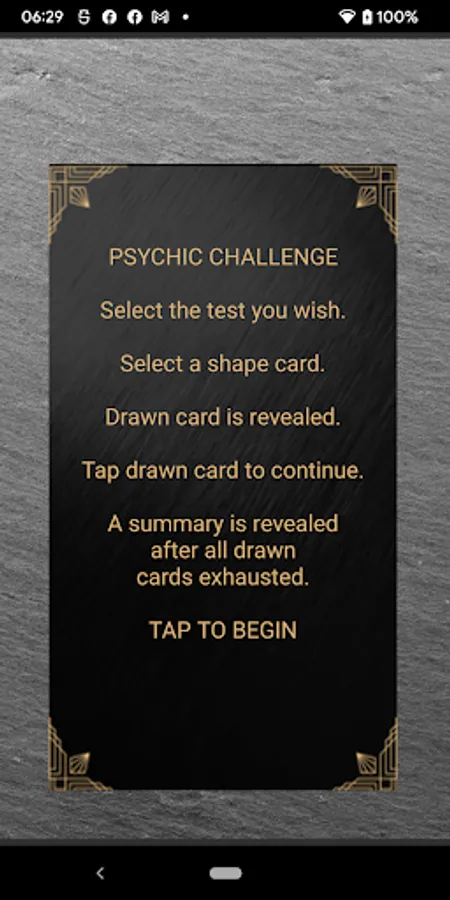 Psychic Challenge - Test your psychic capability with the well known Zener style cards. Select from 5 different tests. Each test increases in the number of drawn cards. Can you meet the Psychic Challenge?