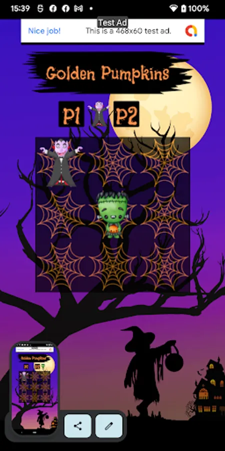 Golden Pumpkins - classic tic-tac-toe with varied halloween themed characters. Three in a row reveals the golden pumpkins for the winning line! This is a two person (in person) head to head game designed intentionally to promote in person interaction.