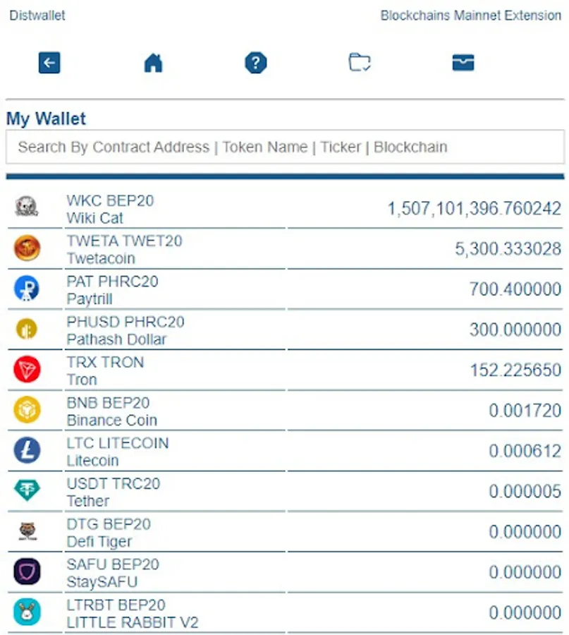 Distwallet supports NFTs, FTs and most crypto and blockchain projects.