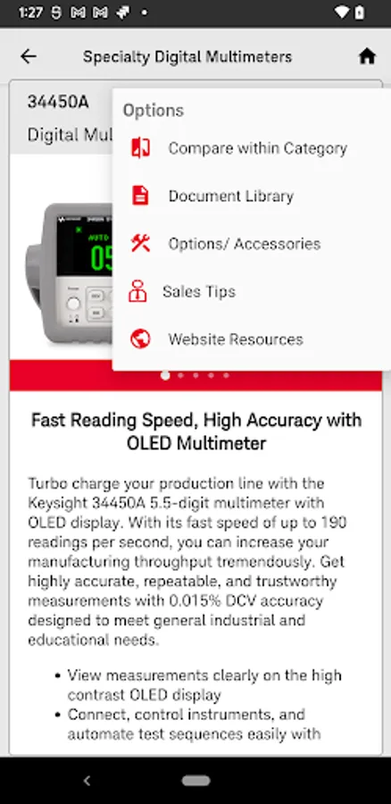 Keysight is committed to supporting our Distribution Partners in every aspect of the sales process. This mobile app provides support to quickly locate and compare various products for your customers. Inside, you will find features such as search, industry references, product selection and compare tools, and quick references to product specific information.