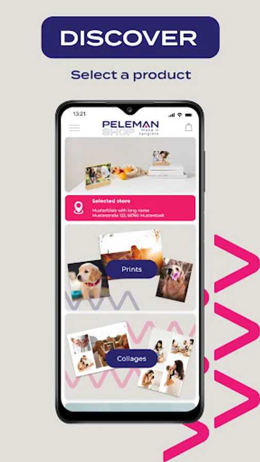 With the free Peleman Shop app you can design your photos comfortably on your smartphone from home or anywhere in the world and print them via QR code directly at the nearest Peleman Shop Photo Kiosk of your choice without waiting time.