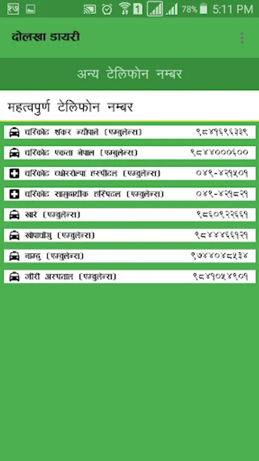दोलखा डायरी नामक मोवाइल एप प्रकाशन गरी उक्त एपमा निम्नानुसारको कार्यालय, संघ संस्था तथा ती संस्थाहरुमा आवद्ध व्यक्तिहरुको सम्पर्क नम्बर उल्लेख गरिएको छ