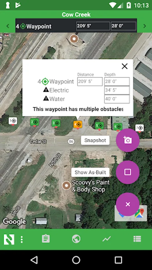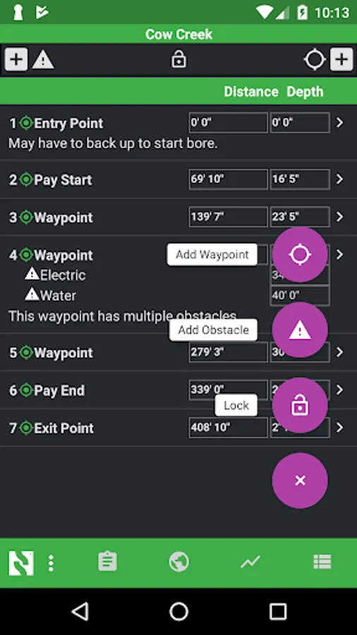 The Field Scout™ mobile bore planner allows you to walk the intended bore path of your job and record important waypoints and obstacles such as the entry pit, exit pit, and utility crossings.