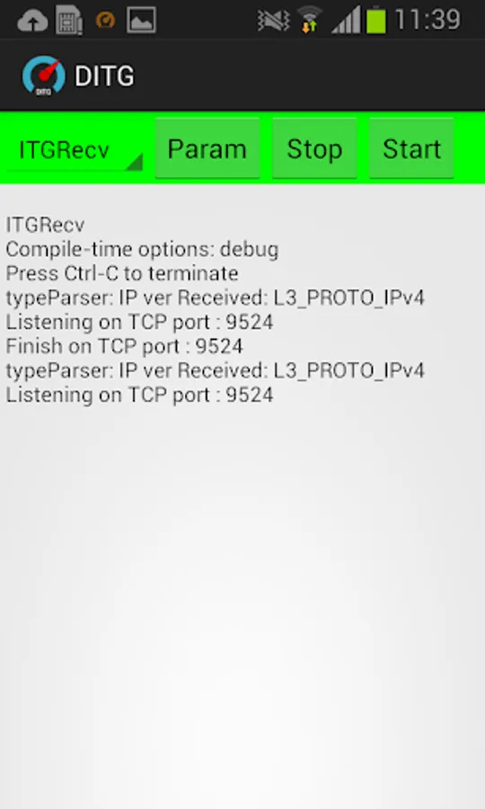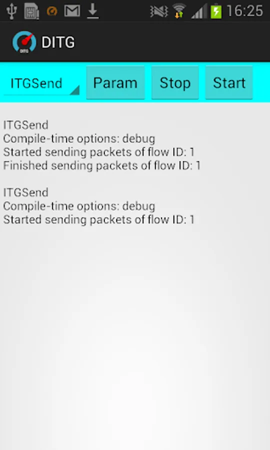 The aim of implementing this desktop application is to be able to measure the network performance between mobile devices. In this version two main functionalities among many D-ITG functions are supported, namely, ITGRecv and ITGSend. It is highly recommended to read the documentation of D-ITG [1] to understand its concept.