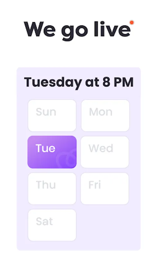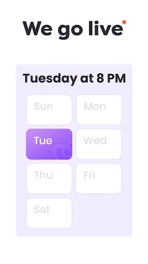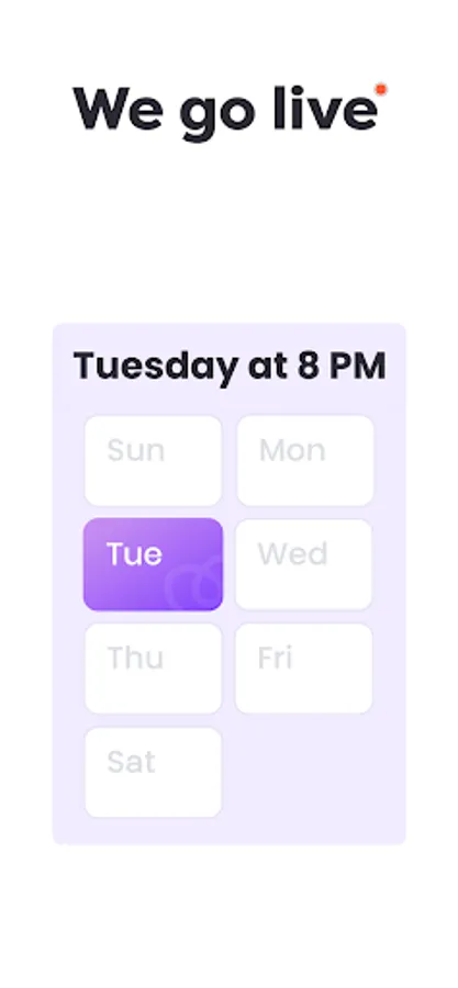 Sessions: Open ended live video speed dating, occurring once a week on a Tuesday at 8pm. Thousands of people all video speed dating simultaneously... for FREE! Our Sessions go live at select locations across the United States.