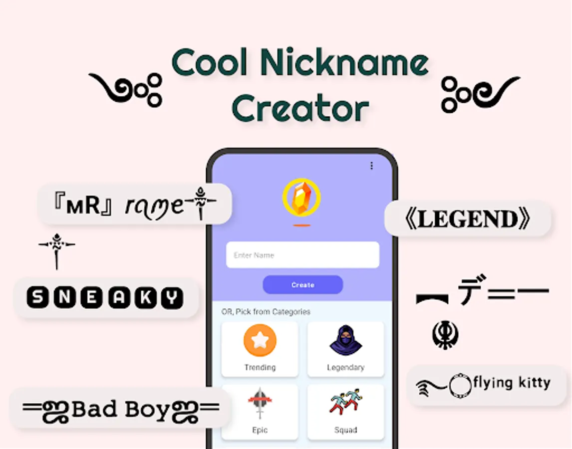 Gamer Nickname Creator is designed for all to create unique looking gaming nicknames with the combination of stylish text and cool fonts. You can generate a nickname of your choice or the app will create a unique nickname for you according to your taste. It has multiple fancy text styles and symbols that makes you stand out among other gamers.
