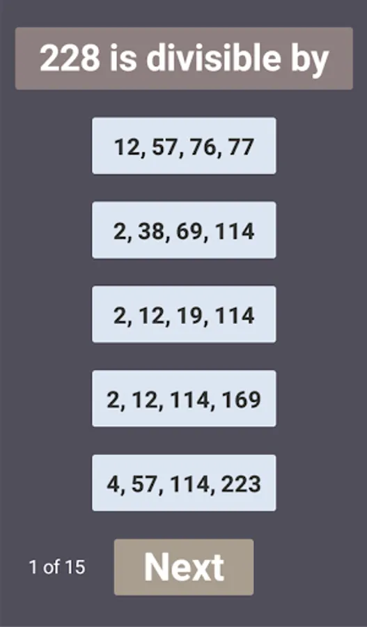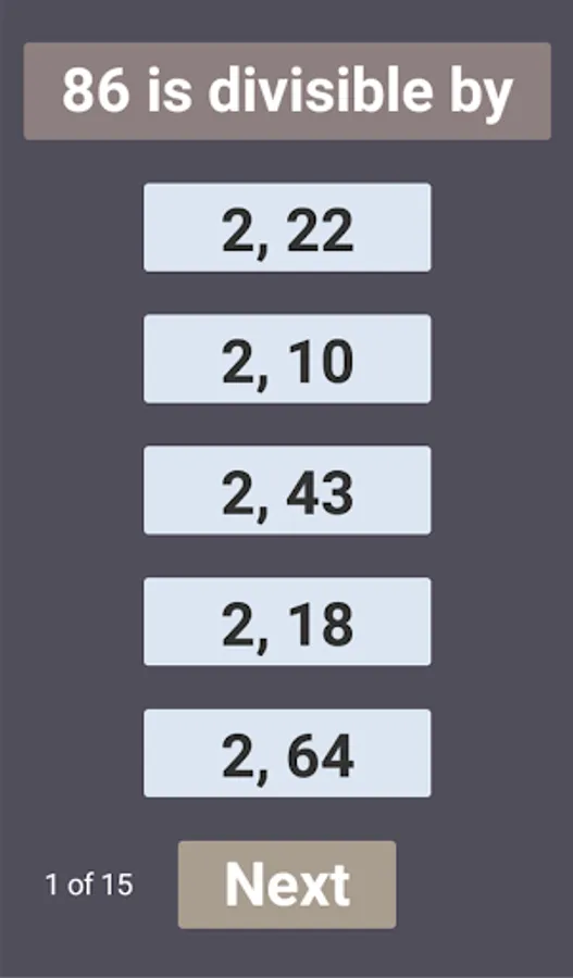 This app provides students with several tests about divisibility problems. One number is divisible by another if, after dividing, the reminder is zero. With DivIt, you have to find out divisor / s of a given number: an infinite series of exercises to practice with!