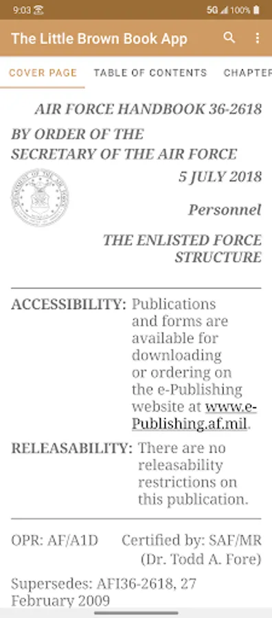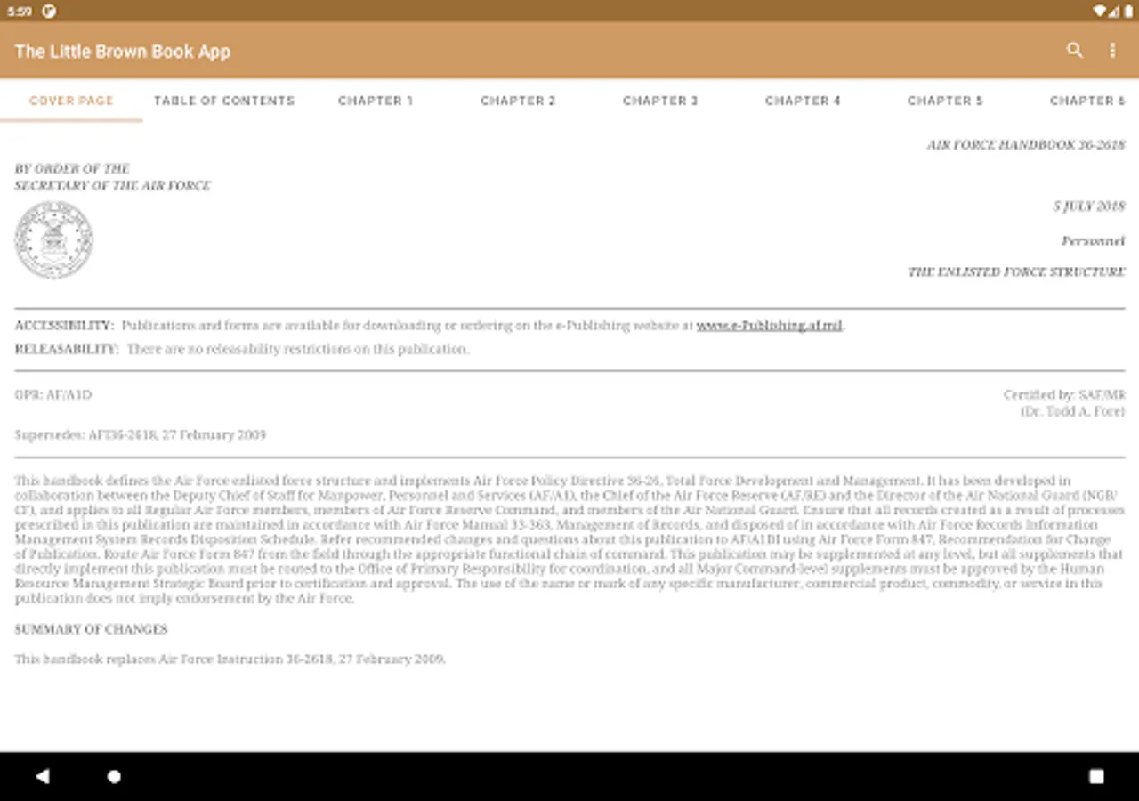 Replace your physical copy of Air Force Handbook 36-2618, The Enlisted Force Structure, and view it directly from your smart device!