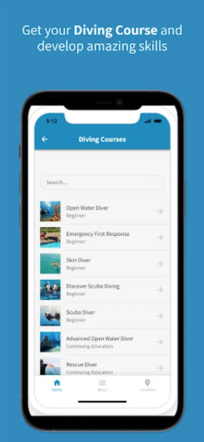 Book your next diving adventure and find out more about diving courses provided by experienced professionals. Know more about diving centers, resorts & sites and explore the underwater world. You can try diving for the first time or develop your current diving level via a complete list of courses certified by global diving organizations.