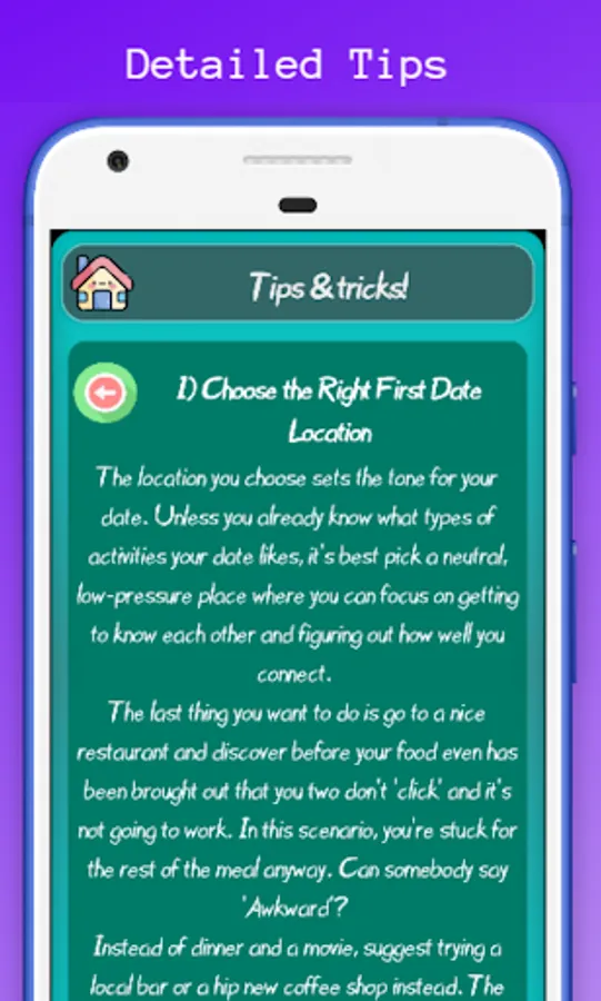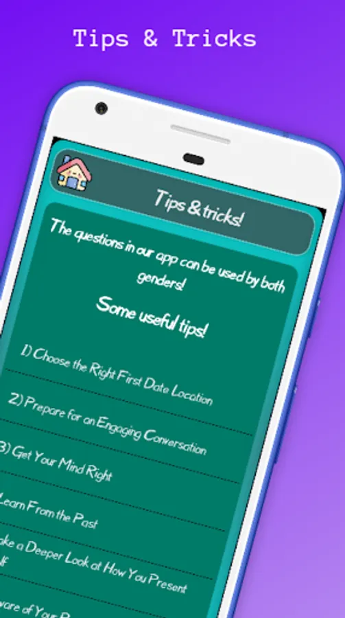 Within the app you will find more than 300 questions and tips that you can discuss with your date.