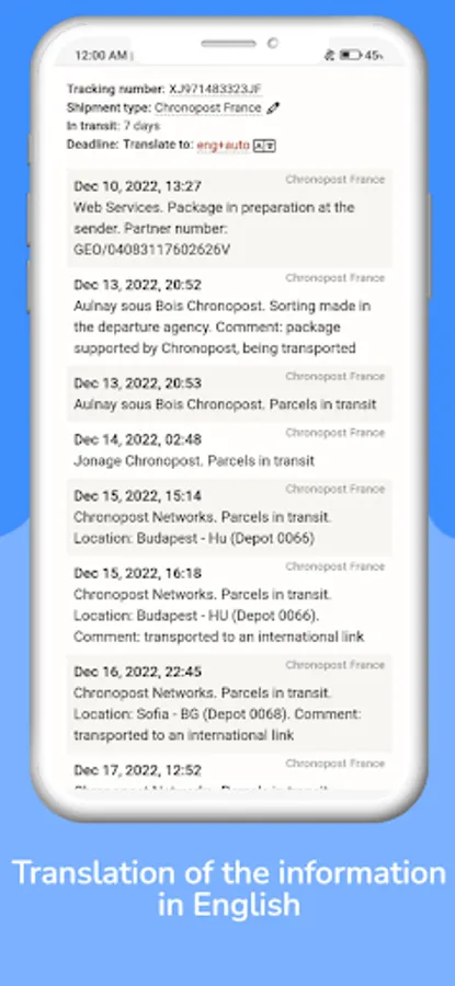 Our application combines tracking systems of more than 540 postal and courier services, which means you can monitor the location of any package sent with major postal operators. What's more, all tracking information is in English, which is a real plus. Package Tracking saves you the trouble of tracking your mail.