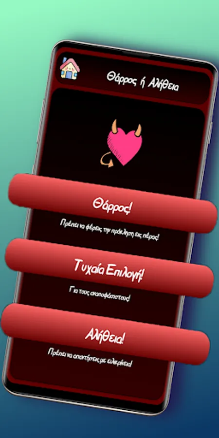 Each player can choose questions of courage or truth or randomly one of the two if they wish.