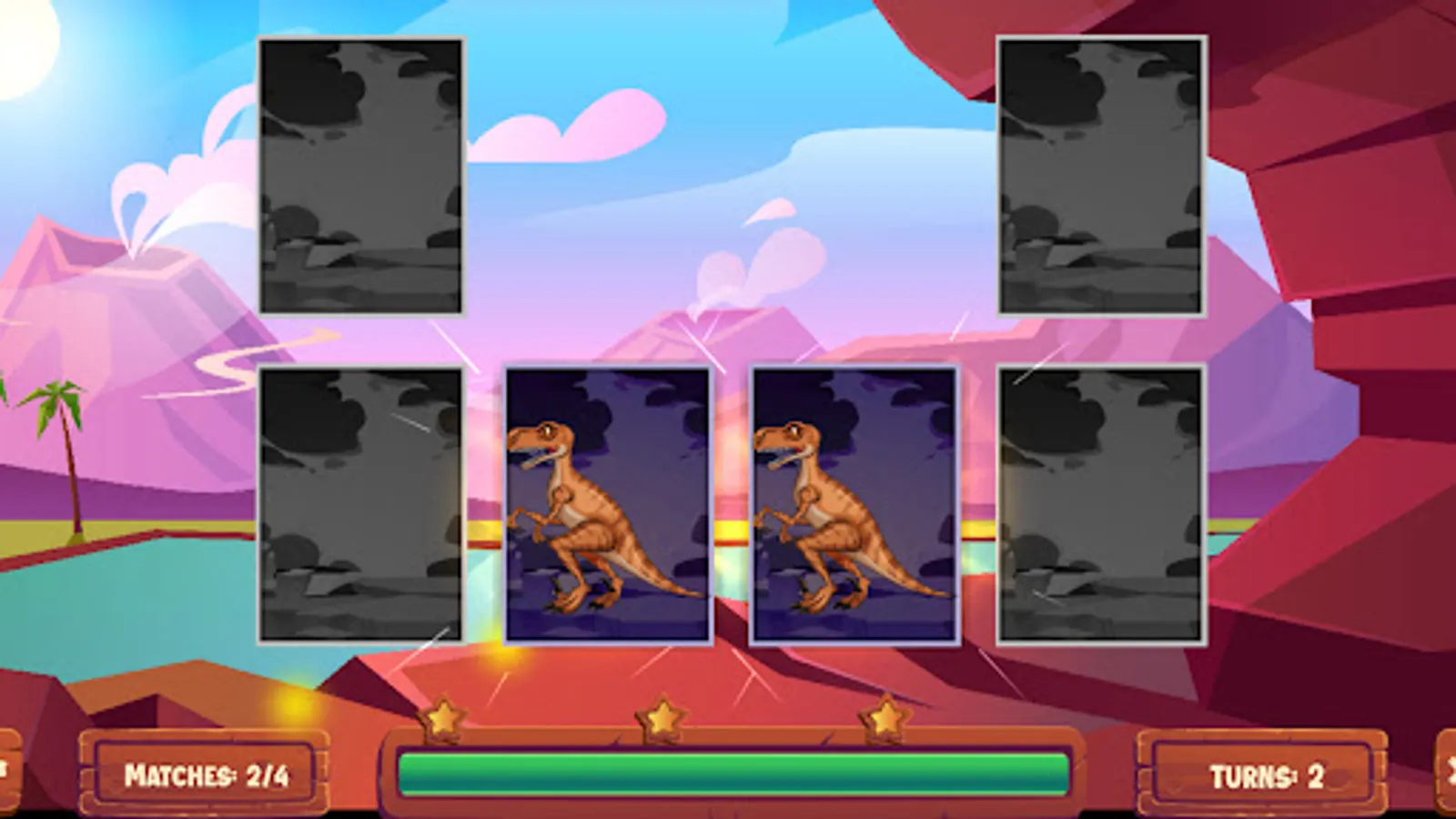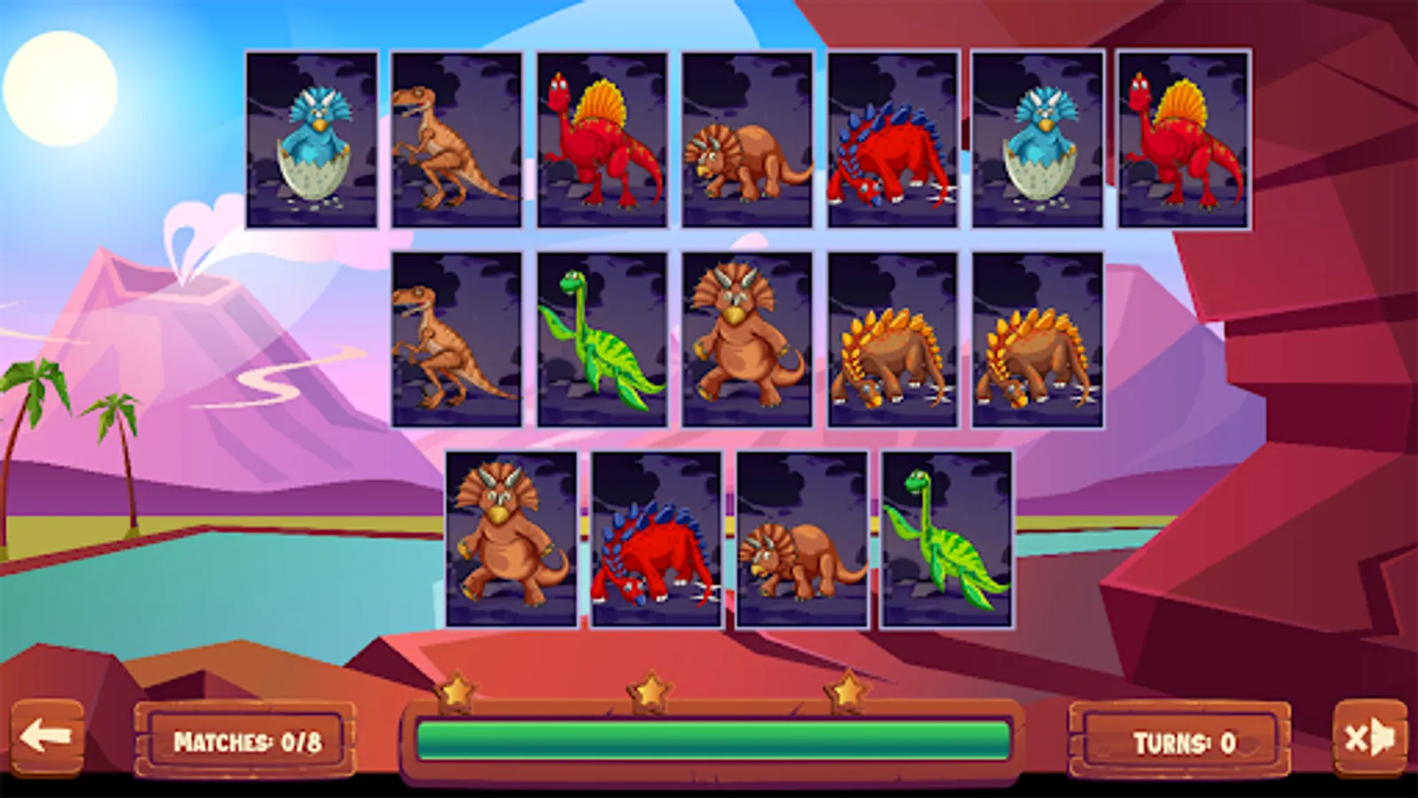 This match puzzle game is based on the world of dinosaurs and is all about finding a pair of match objects, and so on until you match all available cards. It has up to 10 amazing levels with good graphics.