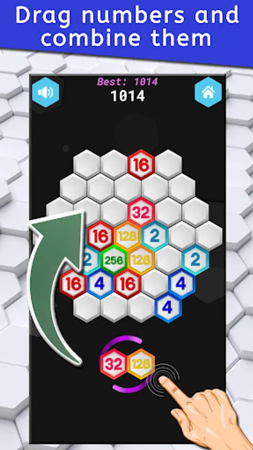 π’ Start the bloc hexa puzzle game by completing the first level where you need to merge the number 32. Drop the number blocks on the hexagon and try to match 3 to merge and double the sum of the numbers. Merge three 2 blocks to get one hexa block of 4, or merge three 4 blocks to get a hexa block of 8, and so on. Reach the target depending on what the block puzzle hexa level requires from you.