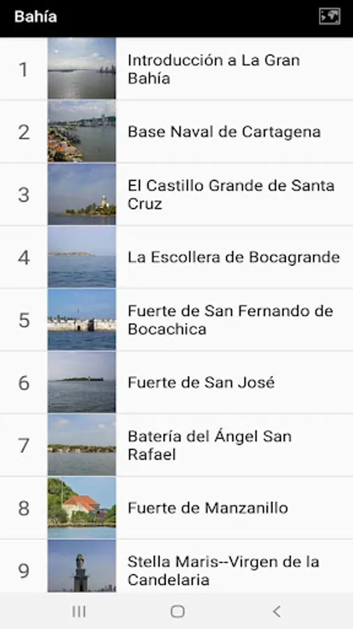 17 stations in total, distributed in the Great Bay which include the Naval Base of Cartagena, the Fort of San Fernando de Bocachica, the Fort of Manzanillo and the Fort of San José, among others.
