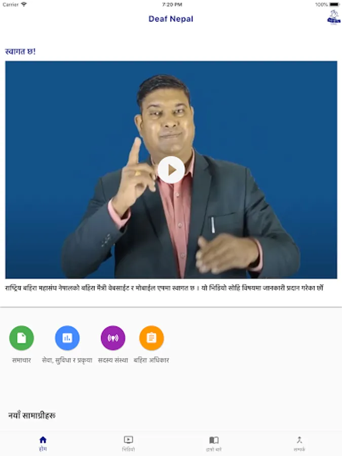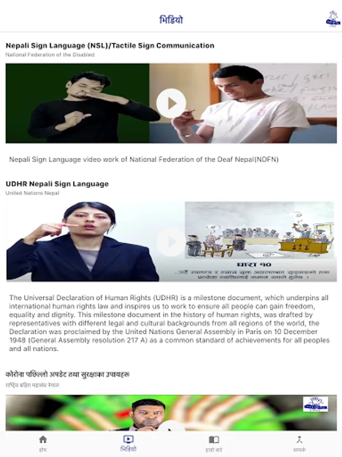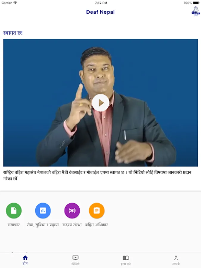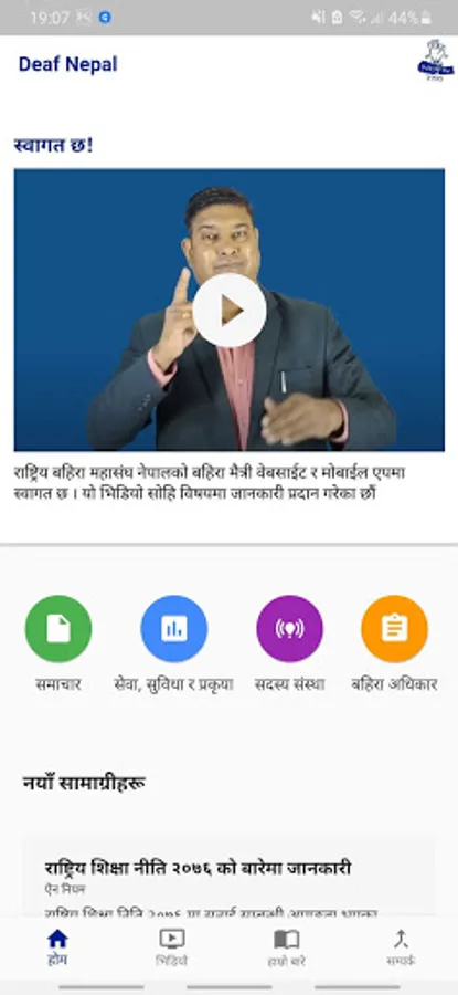 National Federation of the Deaf – Nepal (NDFN) presents Nepal's first deaf-friendly mobile app – Deaf Nepal. The mobile app is developed to provide accessible news and information to people with hearing disabilities in Nepali Sign Language. Many deaf people in Nepal often are deprived of their right to information because of the lack of resources in accessible formats like Sign Language. They are mostly unaware of the community's ongoing news and about their rights and services they can access. Thus to fill the gap of information, NDFN has developed this app to be a go-to solution for all deaf people of Nepal.