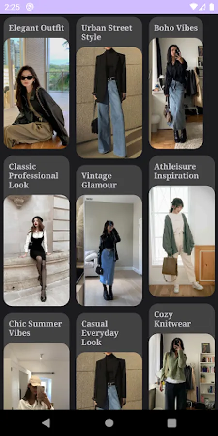 Explore a diverse range of 'Back to School Outfits' that cater to every taste and vibe. Whether you're into laid-back streetwear or prefer a more polished and sophisticated look, our app has you covered. Browse through a variety of categories, including comfy knits, athletic-inspired attire, retro revivals, and more. Each outfit is a masterpiece of inspiration, designed to empower you to create memorable first impressions.