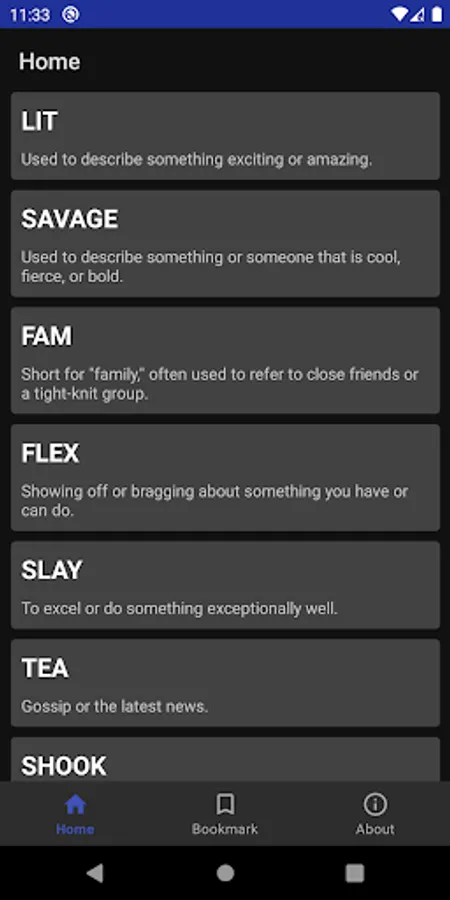 Gen Z for Boomers. Enhance your vocabulary across generations with 'Gen Z for Boomers' app. Immerse in Gen Z language and bridge the generation gap. Explore modern terminology and slang, expanding your linguistic skills in an interactive and engaging way. Unlock effective communication between Boomers and Gen Z, fostering a deeper understanding of contemporary expressions. Elevate your lexicon and connect with younger generations seamlessly. Embrace the linguistic evolution, all within the convenience of your device. Start your journey to fluent intergenerational conversation today!