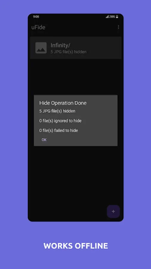 Whether you're looking to keep your personal files private or protect sensitive information, uFide is the perfect solution. With its easy to use interface, advanced security features, and support for multiple file types, uFide is the universal file hider app. Download uFide today and experience the peace of mind that comes with knowing your files are safe and secure.