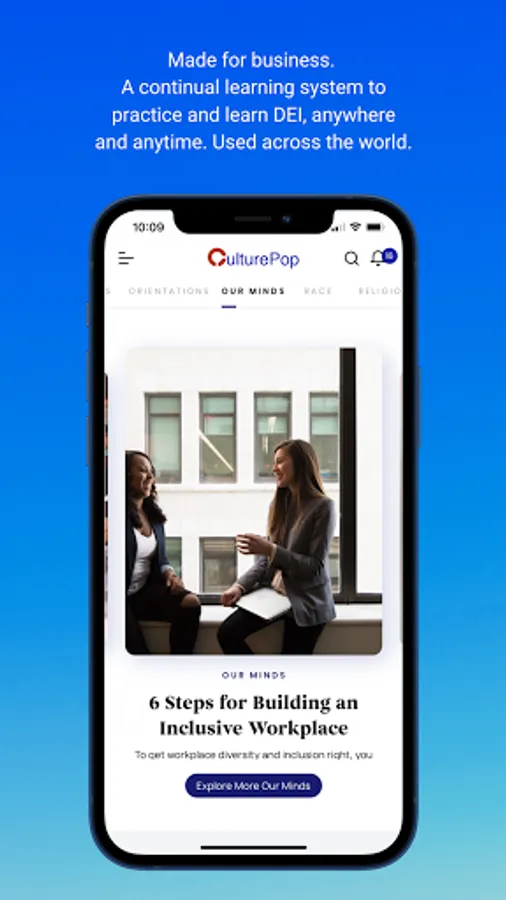 CulturePop is a micro learning and engagement application for any organization to grow its culture, competency, and connectivity. The app is fully customizable and all content and administrative features are included to scale to any sized organization.