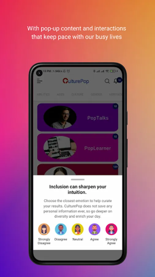 CuturePop uses proprietary Clean AI and No Profiles technology to help your culture become curious, connected, and data-driven. The science behind the software goes beyond intermittent training and integrates DEI learning, leaderships insights and emotional intelligence into your employees’ daily routine.