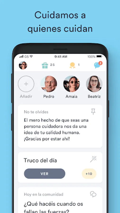 Zaindoo is the gateway to a complete support system for those who care at home for dependent elderly relatives. Allows the caregiver to evaluate the degree of overload motivated by care, physical and emotional health, and other aspects from which a personalized plan is built to provide support: training to improve both the conditions of the family care as yours own, organize tasks and coordinate with other family members involved in care, rely on family care specialists to respond to the challenges posed by the day to day care, and be part of a community of family carers who give and receive support.
