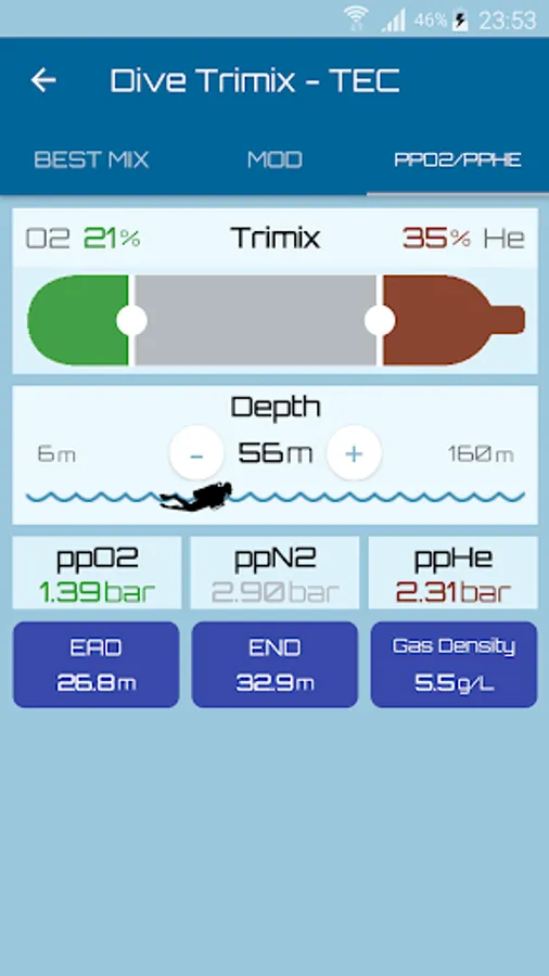 DiveSafe is used for dive planning and gas blending. Featured for both Rec and Tec divers, from Nitrox to Trimix.